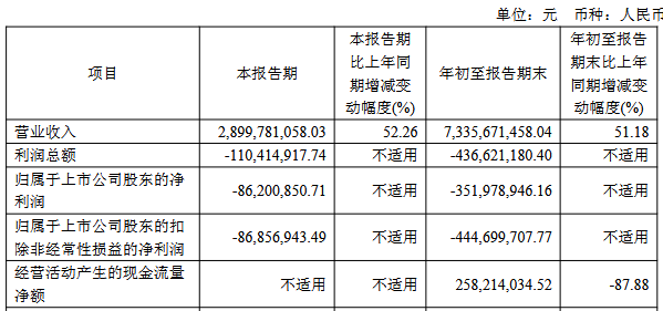 中国经济网北京11月5日电,万润新能源(688275.SH)近日披露2025年第三季度报告。2025年1月至9月,公司实现营业收入73.36亿元,同比增长51.18%;归属于上市公司股东的净利润为-3.52亿元,去年同期为-5.98亿元;归属于上市公司股东的扣除非经常性损益后的净利润为-4.45亿元,去年同期为-6.13亿元;经营活动产生的现金流量净额2.58亿元,同比下降87.88%。 2023年、2024年,万润新能源归属于母公司的净利润亏损分别为15.04亿元、8.7亿元;得度非净利润损失分别为15.36亿元和8.92亿元。万润新能源于2022年9月29日在上海证券交易所科创板上市,公开发行21.303795股,发行价格299.88元/股。保荐机构为东海证券股份有限公司,保荐代表人为盛玉钊、蒋承启。上市首日,万润新能源盘中一度创下259.99元的新高,为该股上市以来的最高价。该股目前正处于突破阶段。万润新能源本次首次公开发行向股东募集资金总额人民币6,388,582,000元。扣除发行费用后,募集资金净额为614,562.26万元。公司最终净募集资金比原计划增加48.84亿元。万润新能源2022年9月23日发布的招股书显示,公司拟为鸿迈募集资金126,208.83万元高科高性能锂离子电池项目、湖北万润新能源锂电池正极材料研发中心,并增加流动资金。万润新能首次公开发行发行费用为24,295.94万元,其中保荐及承销费用21,200万元。万润新能源2023年5月24日披露的2022年度权益分派实施公告显示,本次收益分配及转增股本以分红方案实施前公司总股本85,215,178股为基数,派发现金股利每股3.52元。元(含税),向全体股东转增资本公积金,每股增加0.48股,共派发现金红利299,957,426.56元,转增40,903,285股。本次分配后的总股本为126,118,463股。本次股权登记日权益分配日为2023年5月30日,除权及分红日为2023年5月31日。